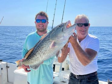 We will stop for live bait on the way out and then travel to the land of giant gags. Big Amber Jack, Red Snapper, Scamp Grouper, Red Grouper and Vermilion Snapper are common bycatch on these trips.